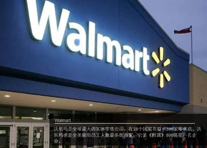 沃爾瑪是全球很大的實(shí)體零售公司,在28個(gè)全國(guó)共有11500家零售店。沃爾瑪也是全美雇用員工人數(shù)很多的商家,它是《財(cái)富》500強(qiáng)名企業(yè)。