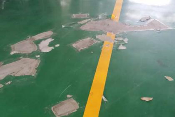 環(huán)氧地坪:不耐磨,特別是轉(zhuǎn)彎處,經(jīng)常被磨損掉